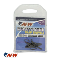 AFW Mighty-Mini Snap Swivels are 100% stainless steel and are 3 times stronger than conventional snap swivels of the same size. Smart anglers know that terminal tackle can spook wary game fish. These compact, 100% stainless steel snap swivels were engineered to be smaller & stronger than the leading brands of tackle on the market. Now you can use much smaller snap swivels for your rigs, that are less visible and significantly more powerful!